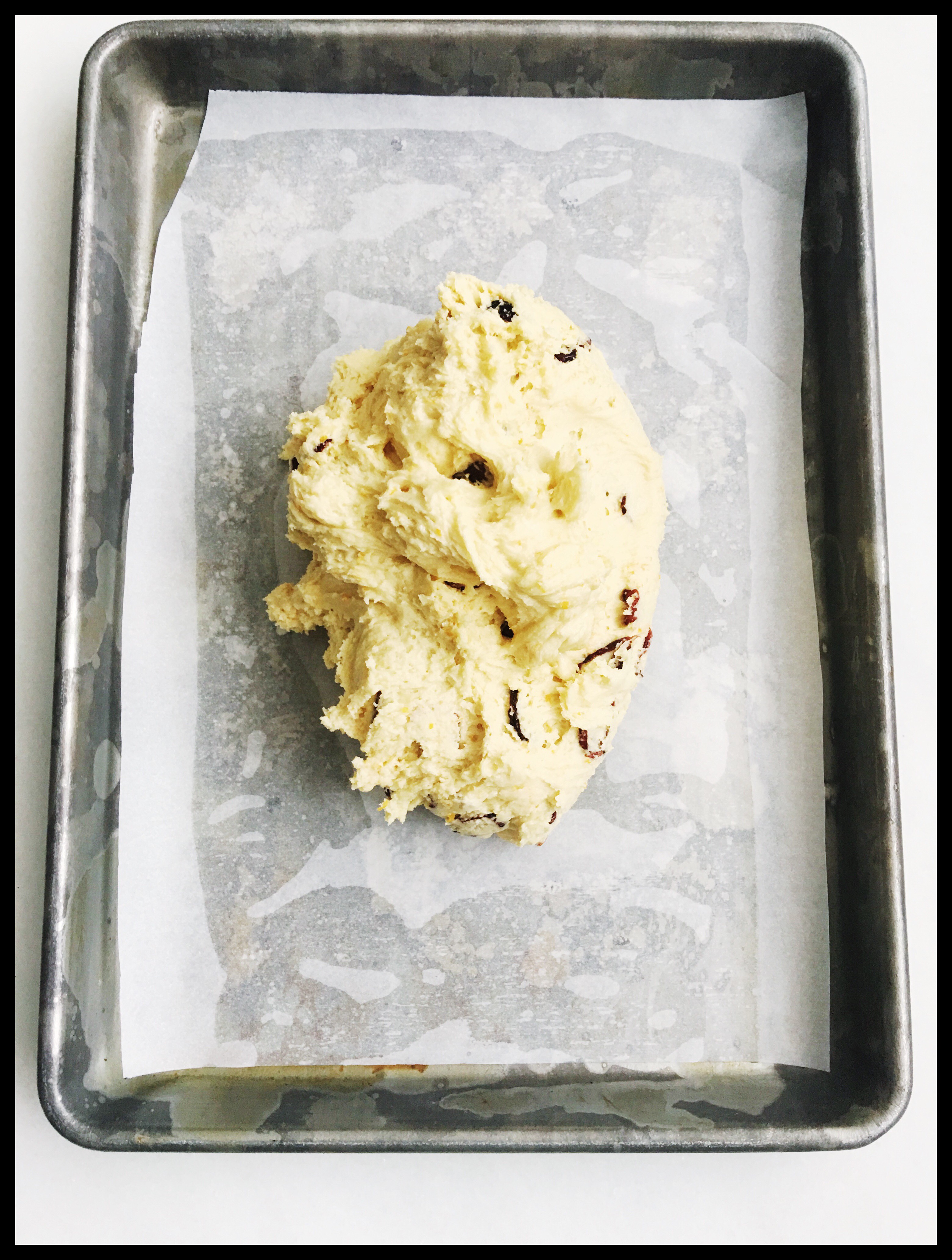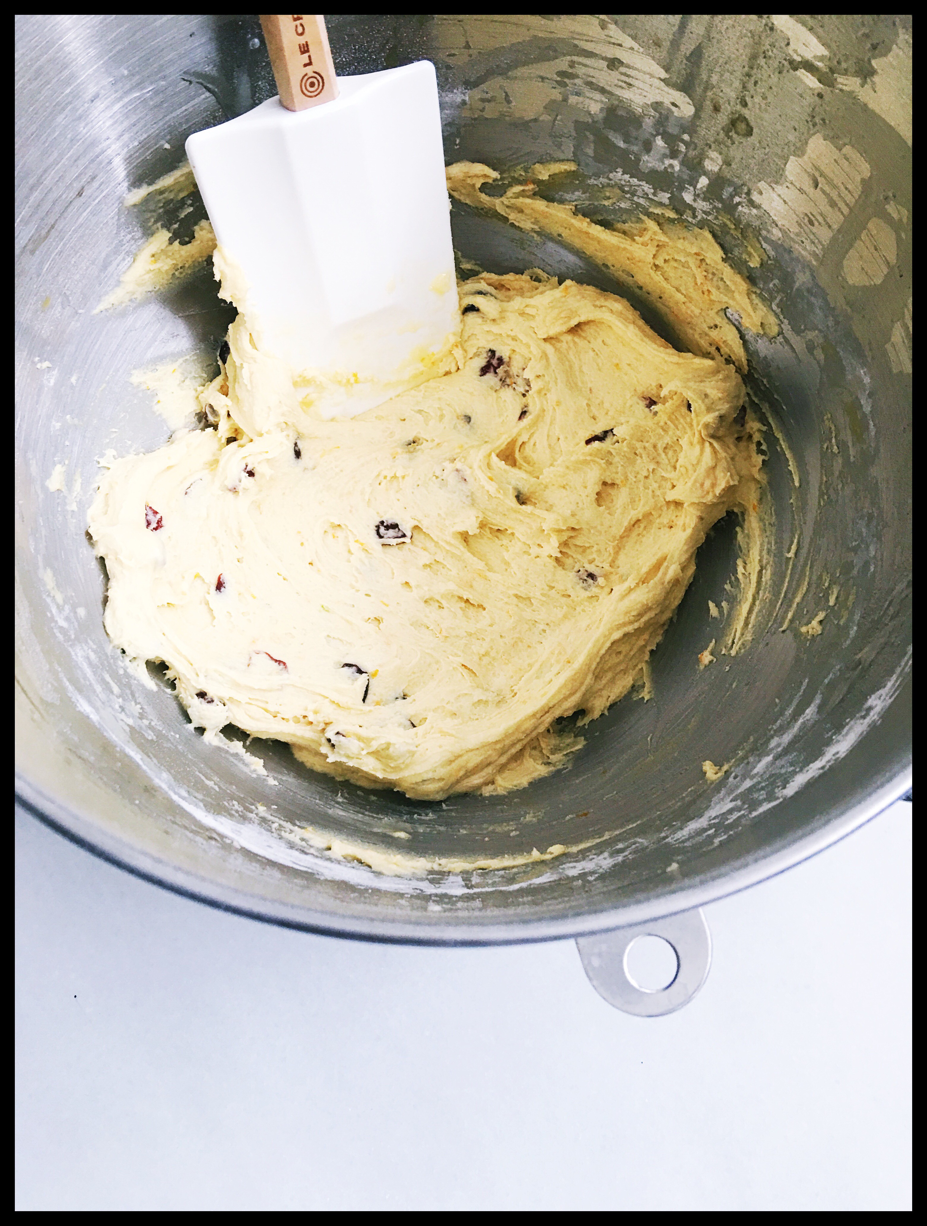 7. Add dried cranberries and mix just to disperse throughout dough.