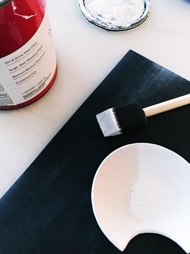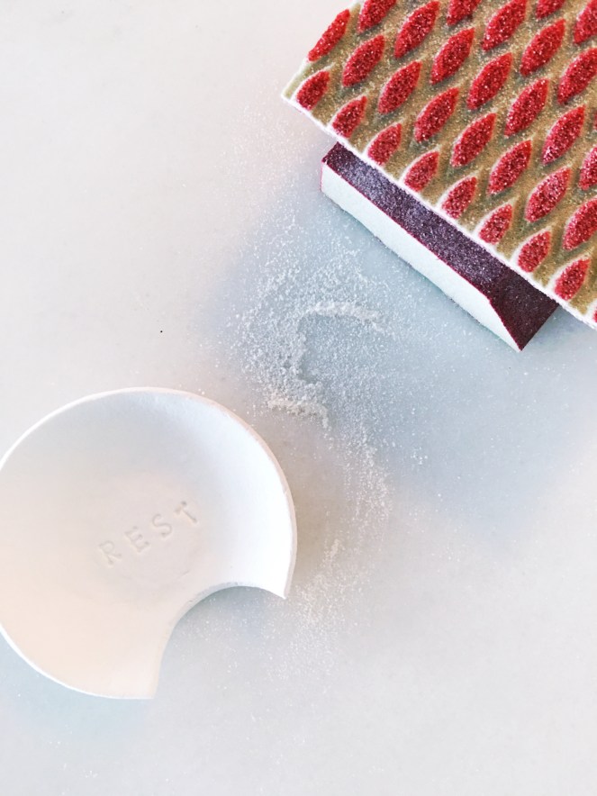 I have a spoon rest that I really love, it’s this one from Fishs Eddy, but it has a permanent home on my stove and is often splattered with tomato sauce and olive oil. What I really wanted was a smaller, more minimal spoon rest that would be a more appropriate size for the utensils I use during my ritual teatime. I really wanted it to be pretty and modern, but I didn’t particularly feel like paying $30 for something that would take me minimal time to make on my own. I actually had everything I need on-hand from prior DIYing, so this project cost me a whopping $0!