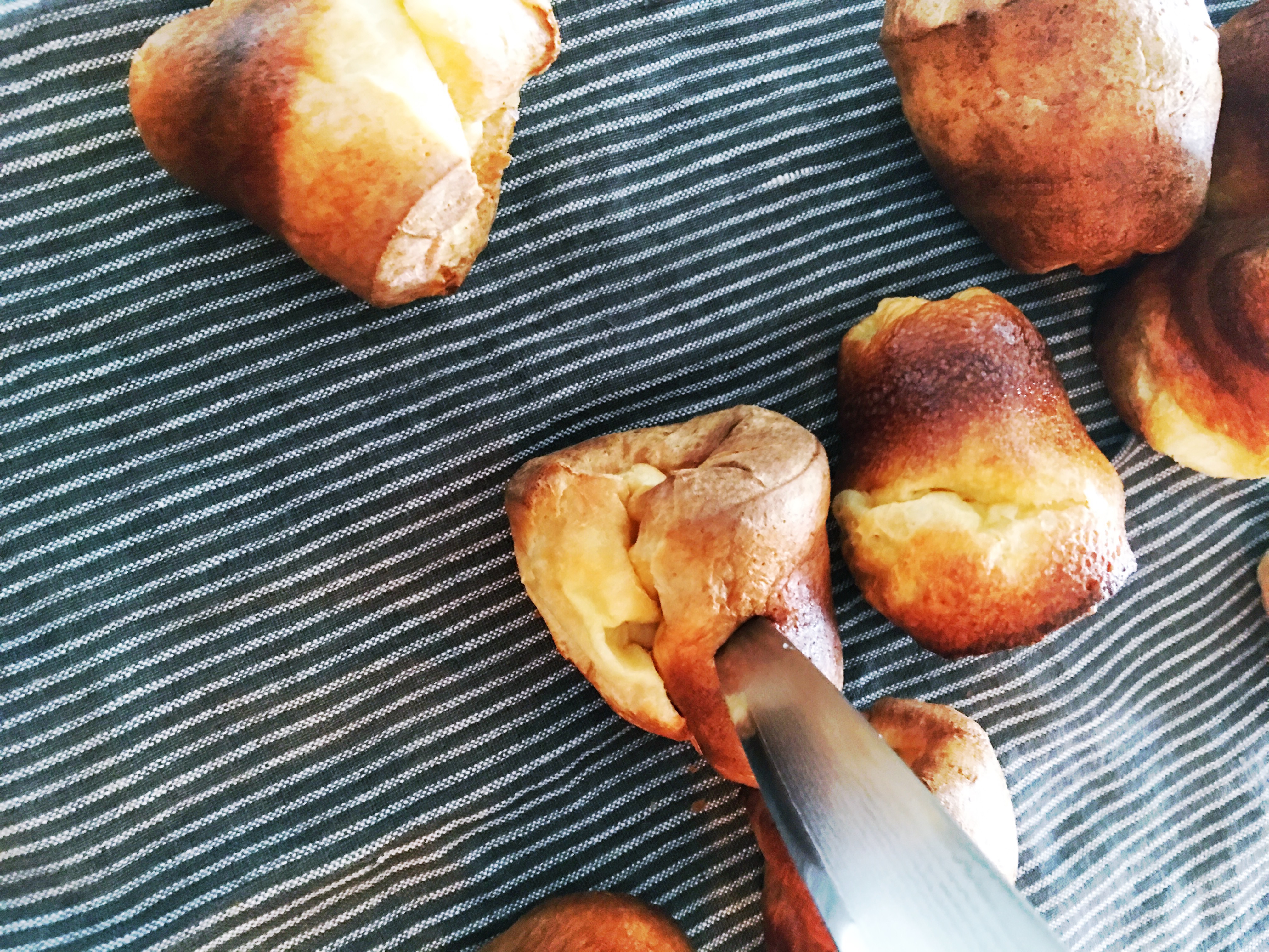I really hope you guys try this recipe. It’s such a great item to know how to make, and it’s one that can really impress at a dinner party! If you do take this one on, make sure you bake the popovers right before you want to eat them. Like all great things, the magic of popovers doesn’t last long, and they won’t be great the next day. (Although you could probably tear up day-old popovers and make a breakfast pastry concoction with them. I’m picturing popover monkey bread or popover bread pudding…)