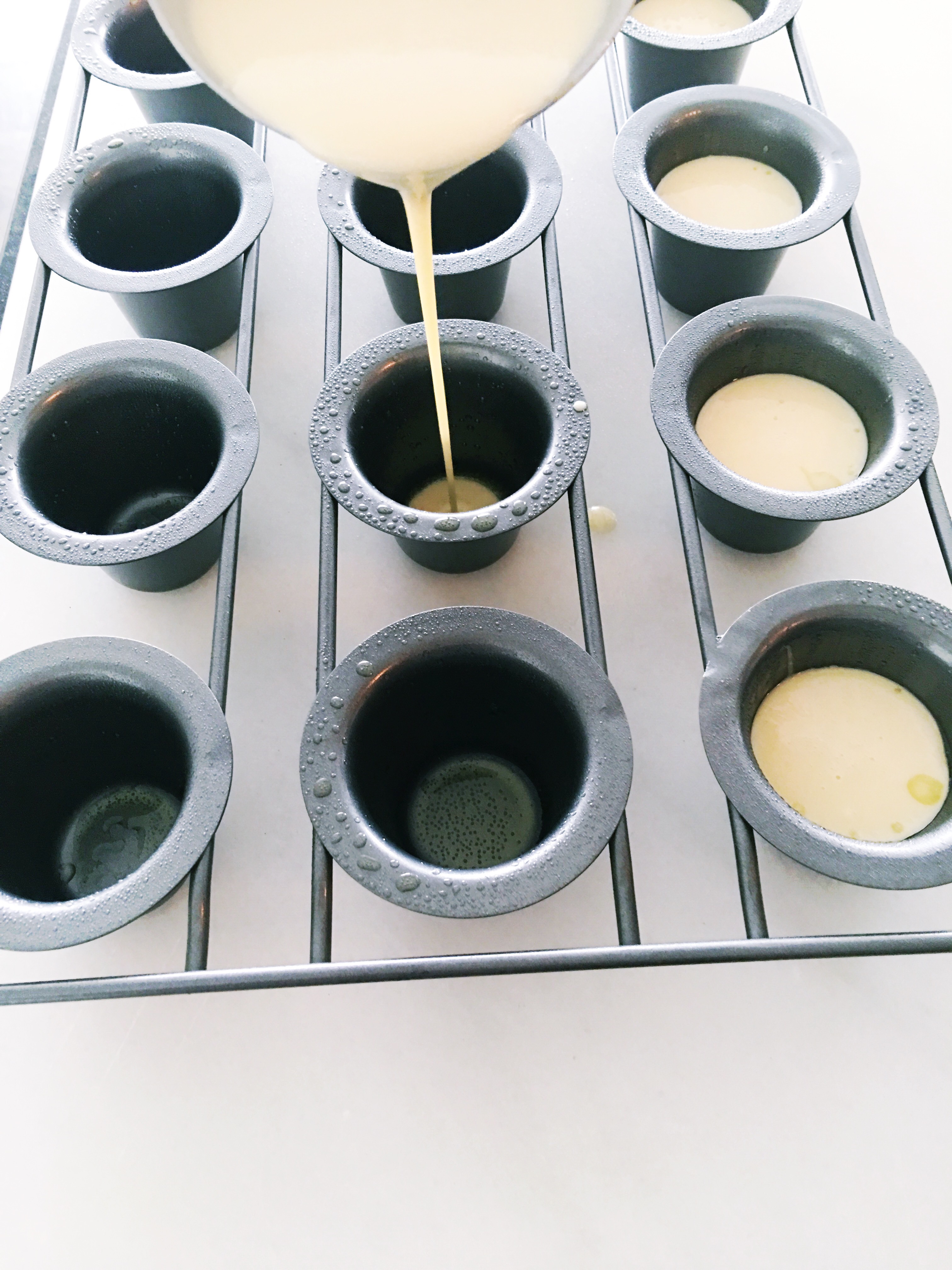 6. Fill about 3/4 of each cup with batter. I used a ladle for this step, but you could use a measuring cup or glass to make it easier.