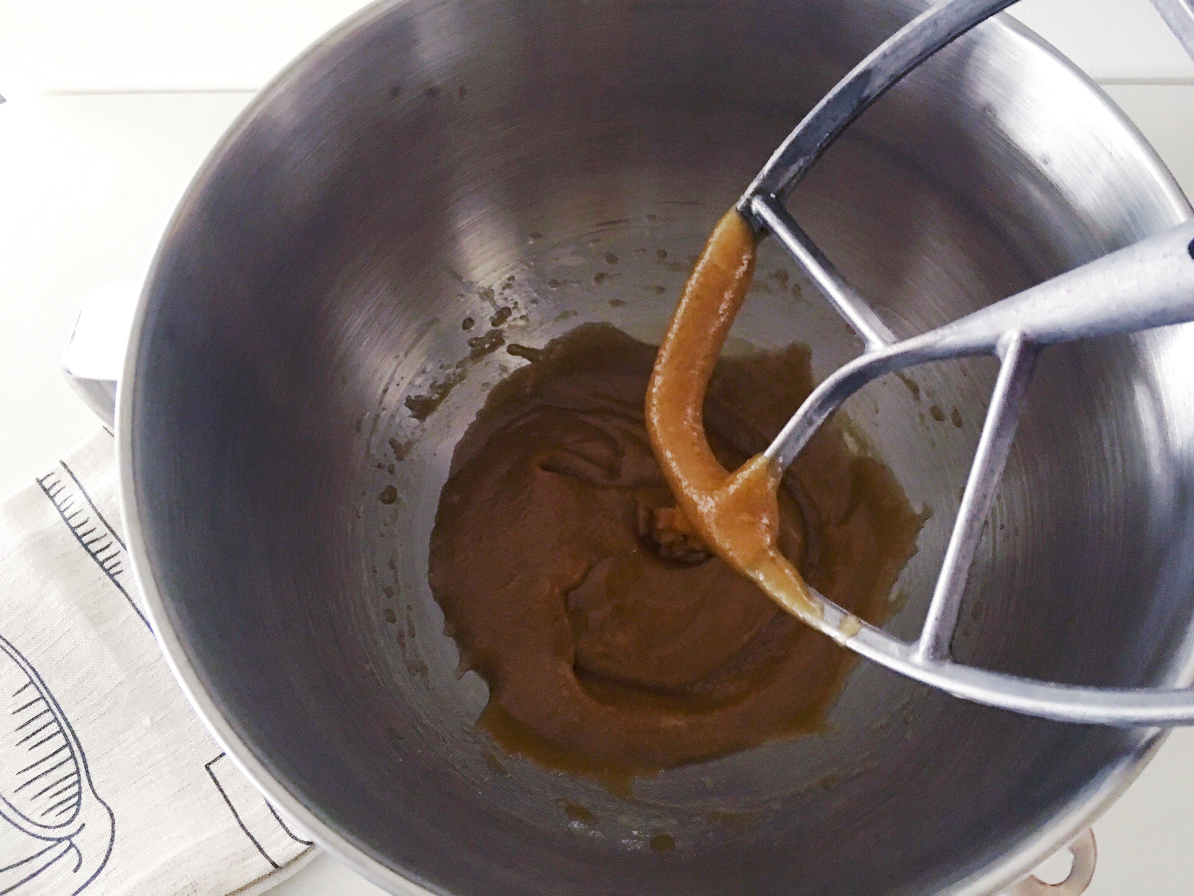 2. In the bowl of a standing mixer, mix together the melted butter and sugars until completely combined and mixture appears creamy.3. Add the egg and vanilla and mix to combine. Scrape down the sides and bottom of the bowl.