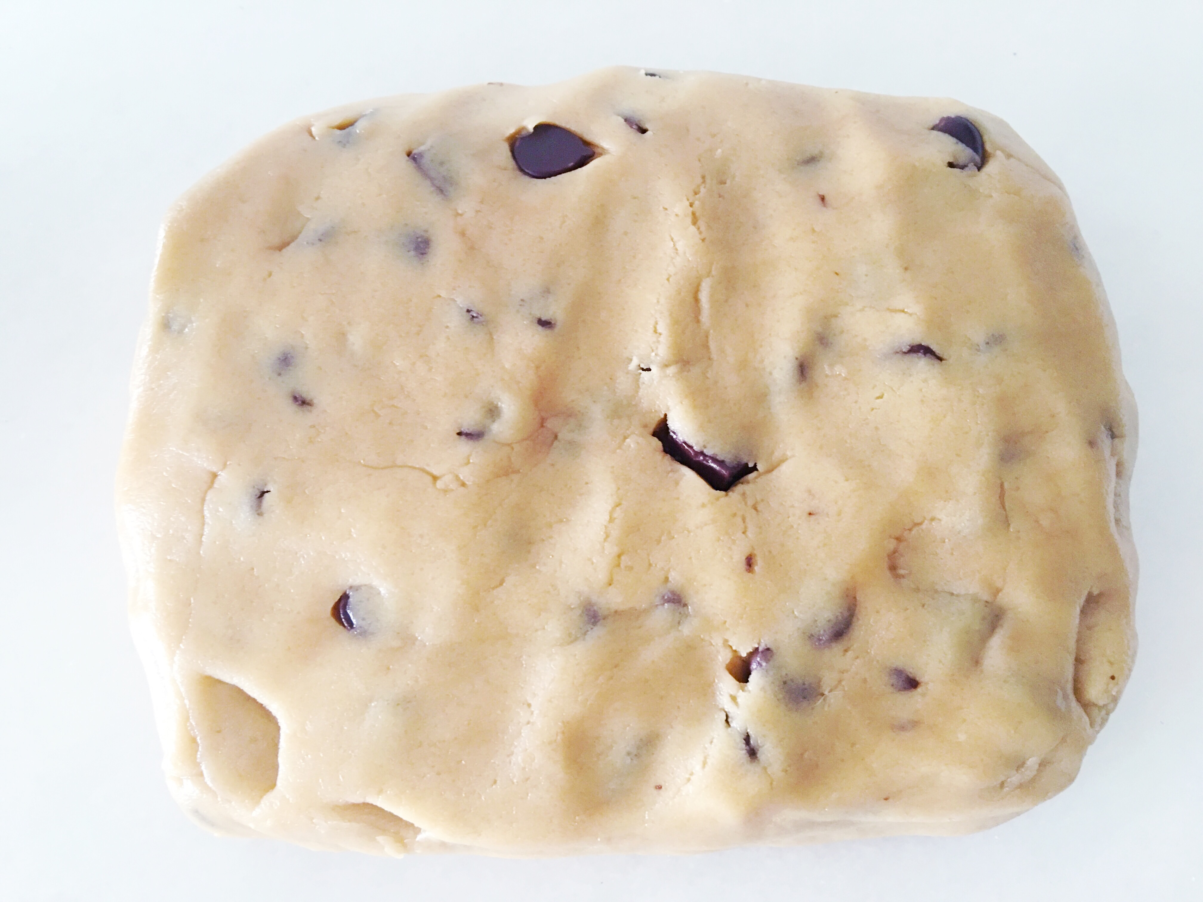 To make mixing the chocolate chips into the dough easier, toss them in a teaspoon or two of flour first. This will help the chips stick to the dough, rather than slide through it. The butter content in the cookie dough will coat the chips and make them greasy, making it hard to keep them in the dough, but a light flour coating with bond with the fat and hold them in place.