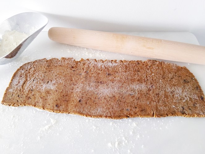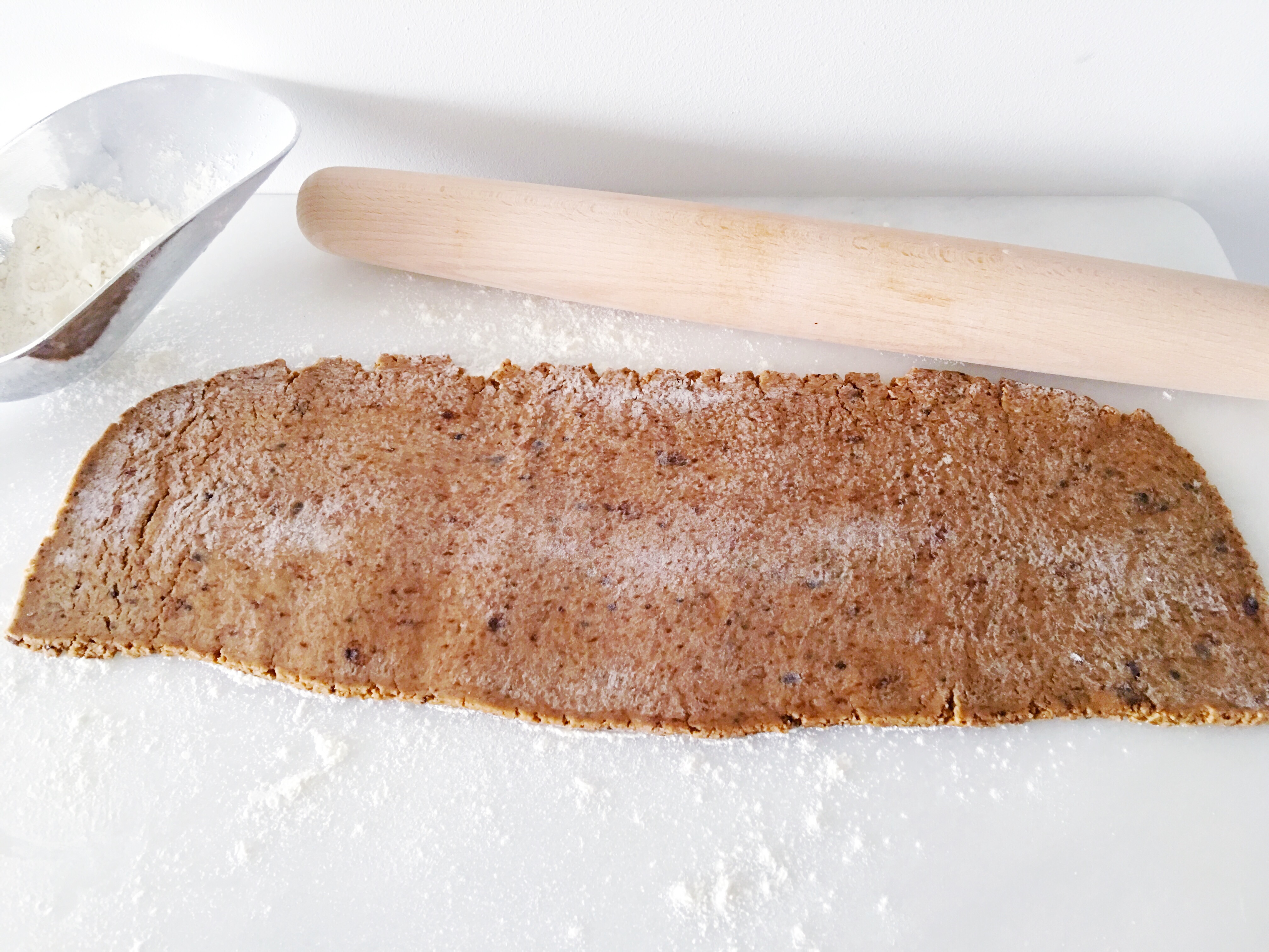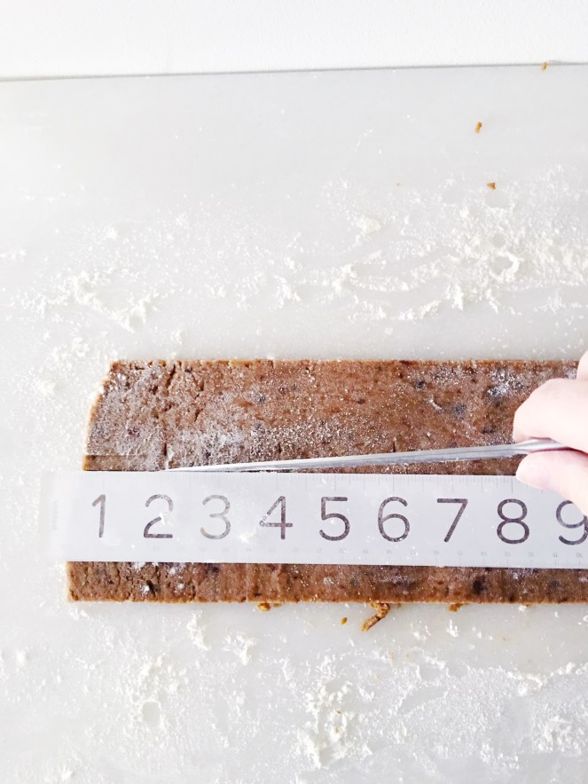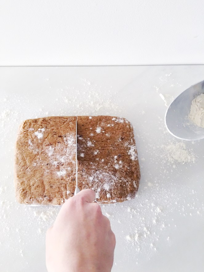 5. Remove the dough from the refrigerator and slice in half. Return one half to the fridge.