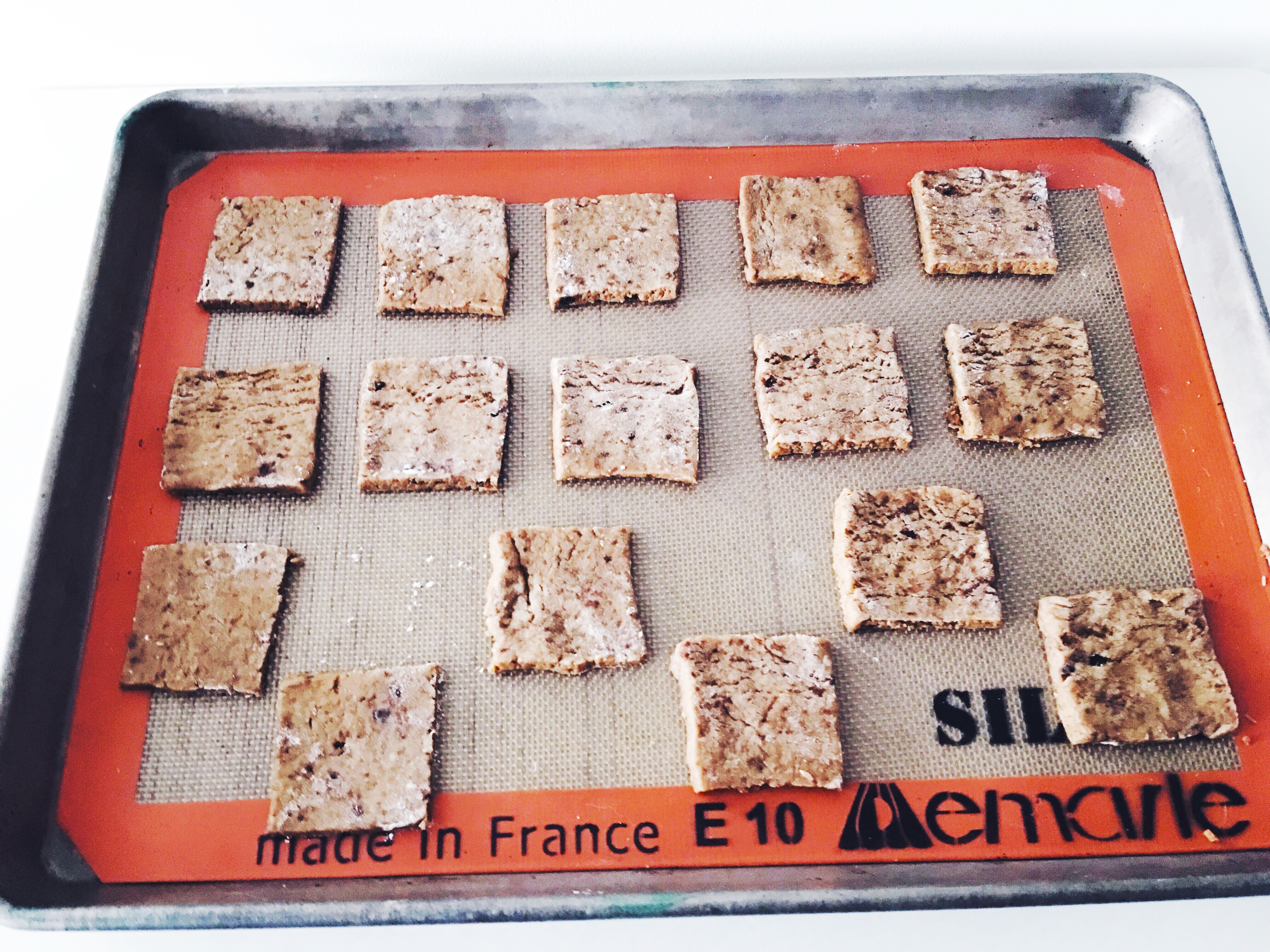 13. Bake the crackers until browned around the edges and slightly firm to the touch, rotating the tray every 4-5 minutes. It should take around 12 minutes for the crackers to fully bake, depending on your oven.