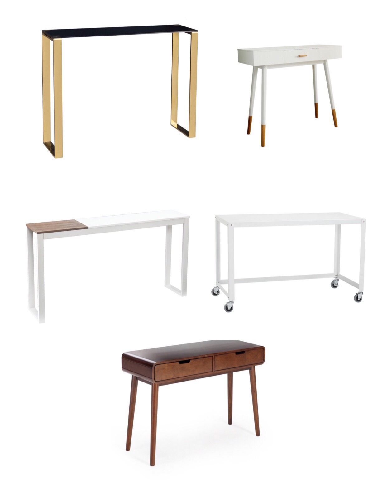 These are some of the options I’ve been considering, and they’re all available for less than $200, and all but one are sold on Amazon (the other, the rolling desk, is from CB2). Obviously the question is what will work best with the new pink walls! Any opinions would be greatly appreciated.